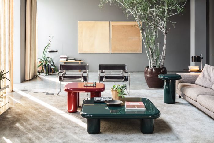 Coffee tables characterized by soft lines, simple shapes and generous volumes. Decorative and functional, they create archipelagos that furnish the living area with personality.